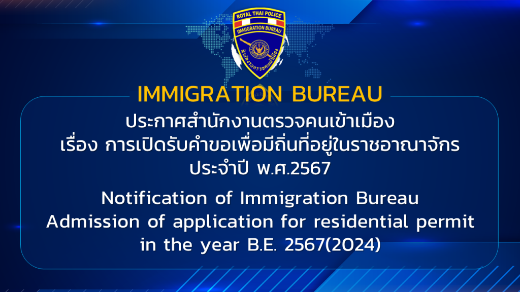 ประกาศ การเปิดรับคำขอเพื่อมีถิ่นที่อยู่ในราชอาณาจักร ประจำปี พ.ศ.2567