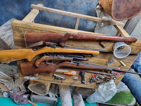 จับกุม นายสรเพชร (นามสมมุติ) อายุ 41 ปี สัญชาติไทย ข้อหา “มีอาวุธปืนเครื่องกระสุนปืนไว้ในครอบครองโดยไม่ได้รับอนุญาต” ของกลาง อาวุธปืนยาวชนิดไทยประดิษฐ์ (ไม่มีหมายเลขทะเบียน) จำนวน 2 กระบอก, อาวุธปืนสั้นชนิดไทยประดิษฐ์ (ไม่มีหมายเลขทะเบียน) จำนวน 1 กระบอก, เครื่องกระสุนปืน จำนวน 11 นัด