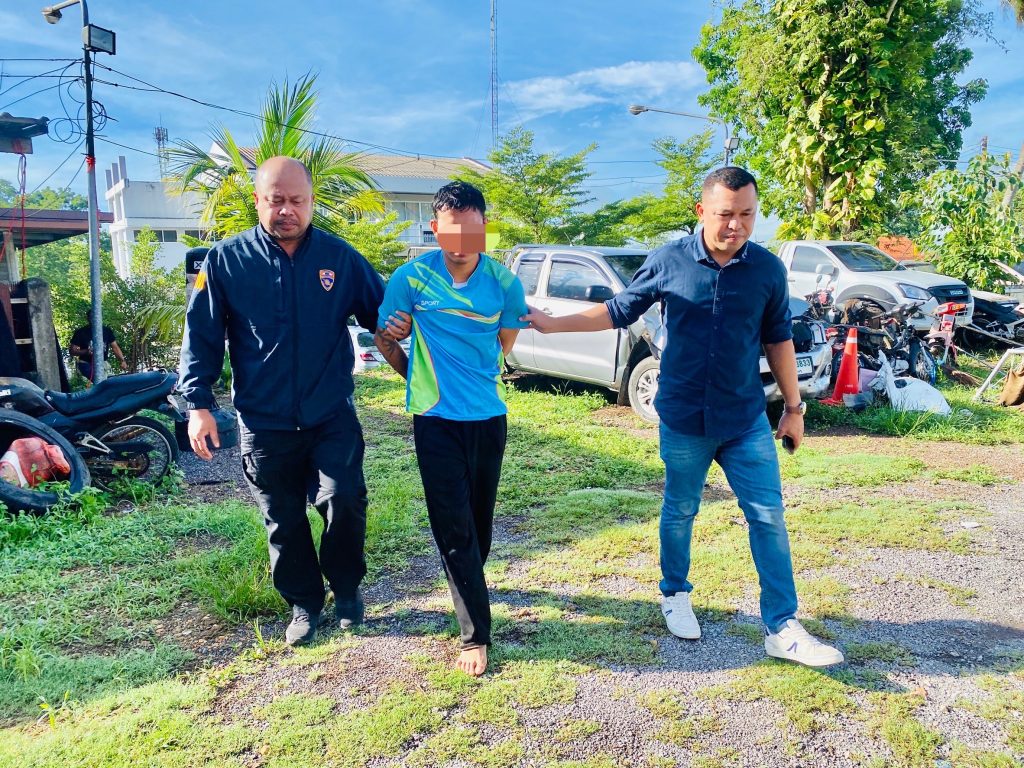 พฤติการณ์ สืบเนื่องจากเมื่อวันที่ 16 เม.ย.68 ที่น นายอาว (นามสมมุติ) สัญชาติเมียนมา ได้ก่อเหตุชิงทองและทำร้ายร่างกายผู้เสียหายแล้วหลบหนีไปนั้น เจ้าหน้าที่ตำรวจได้สนธิกำลังลงพื้นที่ติดตามสืบหาเบาะแสเส้นทางการหลบหนี จนสืบทราบว่า หลังก่อเหตุนายอาวได้ขับรถ จยย.ไปหาเพื่อนชาวเมียนมาด้วยกัน ที่บ้านเขาหลัก ต.นาสัก อ.สวี จ.ชุมพร พนักงานสอบสวนจึงได้ขออนุมัติหมายศาลจังหวัดชุมพร ที่ 118/2568 ลงวันที่ 17 เมษายน 2568 ในฐานความผิด “ชิงทรัพย์เป็นเหตุให้ผู้อื่นได้รับอันตรายแก่ร่างกายและจิตใจ” เพื่อเข้าทำการจับกุม เพราะเกรงจะหลบหนีออกนอกราชอาณาจักร จนกระทั่งวันที่ 19 เม.ย.68 เวลาประมาณ 06.10 น. เจ้าหน้าที่ตำรวจได้เข้าจับกุม นายอาว (นามสมมุติ) ขณะที่กำลังนอนเล่นอยู่หน้ากระท่อมภายในสวนทุเรียนที่ได้หลบหนีมาอยู่กับเพื่อน ซึ่งทราบชื่อภายหลังคือ นายมิน และเมื่อ นายอาว (นามสมมุติ) เห็นเจ้าหน้าที่ตำรวจ ได้พยายามวิ่งหลบหนีเข้าไปในสวนทุเรียน และถูกจับได้ในที่สุด จากการสอบสวน ให้การรับสารภาพว่า ตนเองเป็นผู้ก่อเหตุทำร้ายและชิงสร้อยคอทองคำของนางกชพรรณ เจ้าของร้านขายของชำจริง ซึ่งหลังจากที่ก่อเหตุก็ได้ขับรถ จยย.ไปที่ นายมิน เพื่อนชาวเมียนมา และได้ชวนนายมิน นั่งรถ จยย.มาที่ อ.สวี เพื่อเอาสร้อยทองที่จี้มาได้มาขายให้กับทางร้านทองแห่งหนึ่งในตลาดสวี โดยขายได้ 68,300 บาท หลังจากนั้นได้นำเงินไปโอนให้แม่ที่ป่วยอยู่ที่ รพ.ประเทศเมียนมา ส่วนหนึ่ง และอีก 8,000 บาท ให้กับนายมิน ที่ไปเป็นเพื่อนขายสร้อยทอง และหลังจากนั้นก็ไปซื้อซิมและมือถือใหม่ จนมาถูกจับในที่สุด เจ้าหน้าที่ชุดจับกุมจึงได้แจ้งข้อกล่าวหา ในฐานความผิด “ชิงทรัพย์เป็นเหตุให้ผู้อื่นได้รับอันตรายแก่ร่างการและจิตใจ” และได้แจ้งข้อกล่าวหาเพิ่มเติมคือ “เป็นบุคคลต่างด้าวอยู่ในราชอาณาจักรโดยการอนุญาตสิ้นสุด” อยู่เกิน 796 วัน นำตัวส่ง สภ.บ้านวิสัยเหนือ ดำเนินคดีตามกฎหมายต่อไป