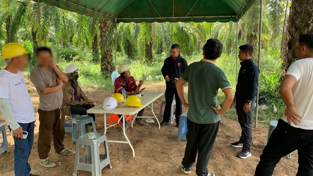 สถานที่จับกุม สถานที่ก่อสร้างโครงการโรงไฟฟ้าจากขยะมูลฝอย ม.10 ต.หาดพันไกร อ.เมืองชุมพร จ.ชุมพร นำตัวส่ง สภ.เมืองชุมพร ดำเนินการตามกฎหมายต่อไป