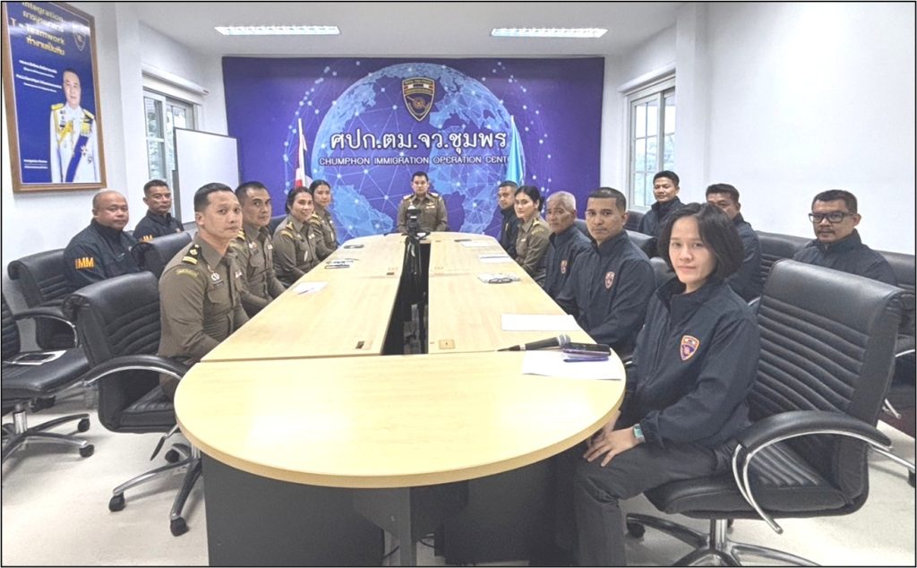 วันอังคารที่  15  ตุลาคม 2567 เวลา 16.30 น. ภายใต้การอำนวยการของ พล.ต.ต.ทรงโปรด สิริสุขะ ผบก.ตม.6, พ.ต.อ.ภาณุภาคยณ์ จิตต์ประยูรตี รอง ผบก.ตม.6 โดย พ.ต.ท.พิระวัตร์ วงศ์ศิริเมธีกุล สวญ.ตม.จว.ชุมพร ได้ในการปฏิบัติหน้าที่ราชการ และกำชับการปฏิบัติหน้าที่ให้เป็นไปตามนโยบายของ ตร., สตม. และ ผบก.ตม.6 ณ ห้องประชุมชั้น 3 ตม.จว.ชุมพร