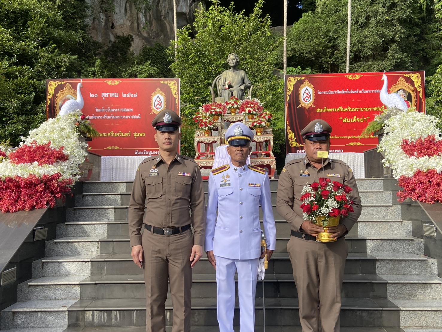 วันนี้ (21 ต.ค.68) เวลา 08.00 น. ภายใต้การอำนวยการของ พล.ต.ต.ชูธเรศ ยิ่งยงดำรงสกุล, พ.ต.อ.ภาณุภาคยณ์ จิตต์ประยูรตี รอง ผบก.ตม.6 โดย พ.ต.ท.พิระวัตร์ วงศ์ศิริเมธีกุล สวญ.ตม.จว.ชุมพร มอบหมายให้ ร.ต.ท.สานุพงษ์ บัวศรี รอง สว.(สส.) ตม.จว.ชุมพร พร้อมด้วย ข้าราชการตำรวจในสังกัดฯ เข้าร่วมพิธีวางพานพุ่ม และถวายราชสักการะ เพื่อน้อมรำลึก “เนื่องในวันคล้ายวันพระราชสมภพ สมเด็จพระศรีนครินทราบรมราชชนนี 21 ตุลาคม 2568” โดยมีี นายเธียรชัย ชูกิตติวิบูลย์ ผู้ว่าราชการจังหวัดชุมพร เป็นประธานในพิธี ณ สวนสมเด็จพระศรีนครินทร์ ชุมพร ต.ท่ามะพลา อ.หลังสวน จว.ชุมพร