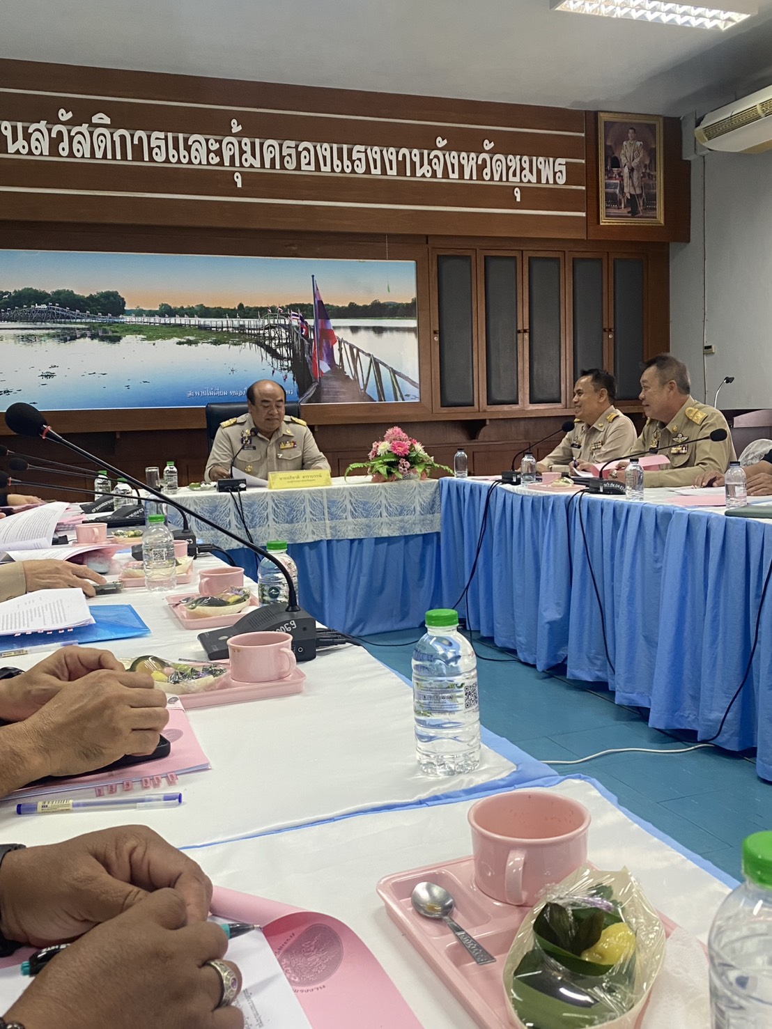 วันนี้ (27 พ.ย.68) เวลา 13.30 น. ภายใต้การอำนวยการของ พล.ต.ต.ชูธเรศ ยิ่งยงดำรงสกุล ผบก.ตม.6, พ.ต.อ.ภาณุภาคยณ์ จิตต์ประยูรตี รอง ผบก.ตม.6 โดย พ.ต.ท.พิระวัตร์ วงศ์ศิริเมธีกุล สวญ.ตม.จว.ชุมพร มอบหมายให้ ร.ต.ท.สานุพงษ์ บัวศรี รอง สว.(สส.) ตม.จว.ชุมพร เข้าร่วมประชุม “คณะทำงานศูนย์บริหารจัดการแรงงานประมงจังหวัดชุมพร ประจำปีงบประมาณ พ.ศ.2569” โดยมี นายอภิชาติ สาราบรรณ์ รองผู้ว่าราชการจังหวัดชุมพร เป็นประธาน ณ ห้องประชุมสำนักงานสวัสดิการและคุ้มครองแรงงานจังหวัดชุมพร อ.เมืองชุมพร จว.ชุมพร