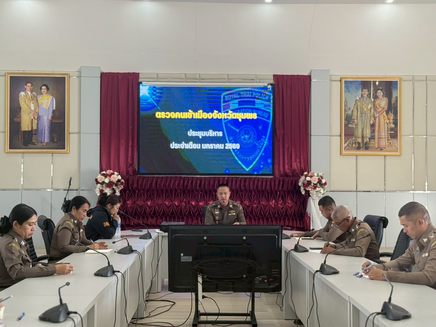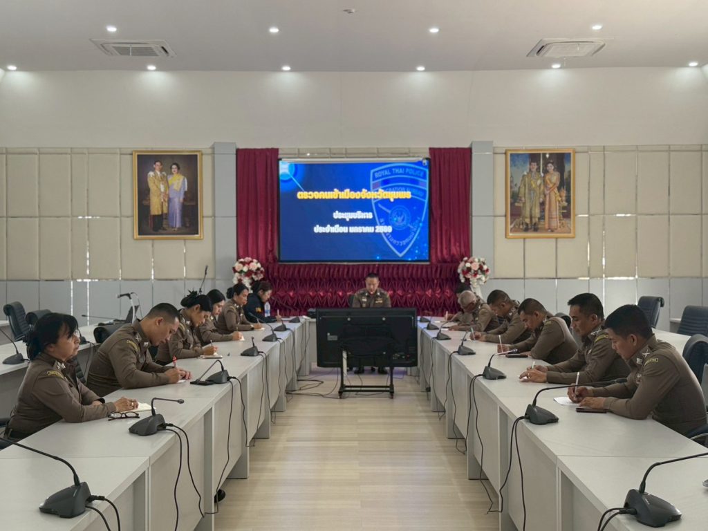 ประชุมบริหาร ตม.จว.ชุมพร ครั้งที่ 1/2569 เมื่อวันพฤหัสบดีที่ 15 ม.ค.69 เวลา 16.30 น. ณ ห้องประชุม ตม.จว.ชุมพร โดย พ.ต.ท.ทรงพันธุ์ กุลดิลก สวญ.ตม.จว.ชุมพร ได้เรียกข้าราชการตำรวจในสังกัด มาประชุมเพื่อรับมอบนโยบาย และกำชับการปฏิบัติหน้าที่ให้เป็นไปตามนโยบายของ ตร., สตม. และ บก.ตม.6 ณ ห้องประชุม ตม.จว.ชุมพร
