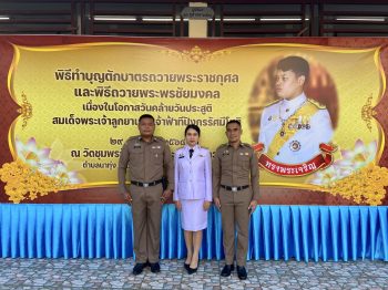 พ.ต.ท.พิระวัตร์ วงศ์ศิริเมธีกุล สวญ.ตม.จว.ชุมพร มอบหมายให้ ร.ต.อ.หญิง สว่างจิตต์ คงตะโก รอง สว.ตม.จว.ชุมพร พร้อมด้วย ข้าราชการตำรวจในสังกัดฯ เข้าร่วมพิธีเจริญพระพุทธมนต์และทำบุญตักบาตรถวายพระราชกุศล เนื่องในวันคล้ายวันประสูติ “สมเด็จพระเจ้าลูกยาเธอ เจ้าฟ้าทีปังกรรัศมีโชติ”